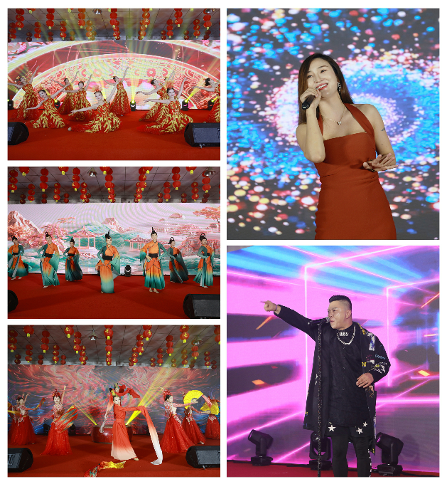 文艺表演 晚宴现场,文艺表演精彩纷呈,高潮迭起。舞蹈《有凤来宜》《橘颂》《美丽中国》各具特色,或展现丰收喜悦,或传递文化底蕴,或抒发家国情怀。宜昌市优秀青年歌手七七倾情献唱《站在高岗上》《特别的爱给特别的你》《月牙湾》,动人歌声直抵人心;时尚电子音乐氛围歌手兰海演绎的《经典嗨歌串烧》与慢摇版《月亮代表我的心》更是点燃全场激情。