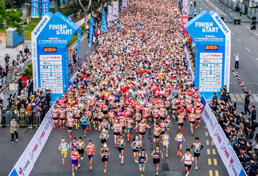 11月2日清晨,2025宜昌马拉松在滨江公园鸣枪开赛。万名跑者迎着晨光,沿长江之畔奋力奔跑,用脚步唤醒城市的活力,激情演绎力与美的运动交响曲。