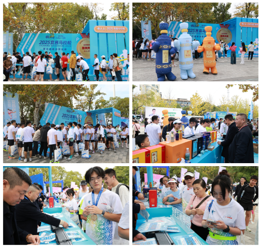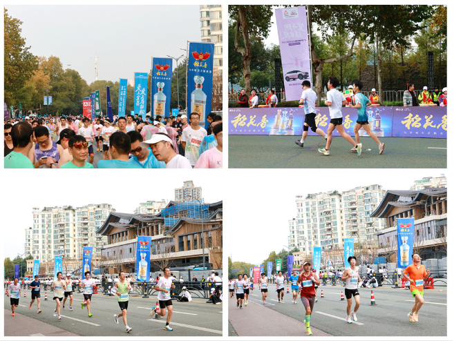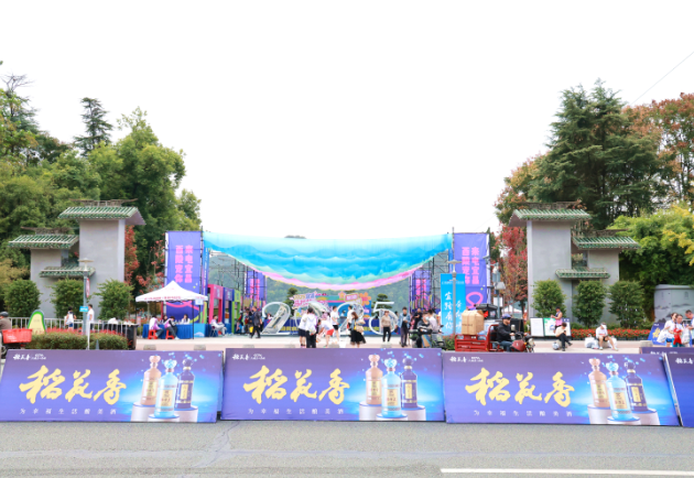 作为赛事多年战略合作伙伴,稻花香今年继续以创新方式助力“宜马”。比赛前,在宜昌市体育馆精心布置了物资领取处,为参赛选手提供贴心服务;赛道沿线,稻花香品牌道旗迎风招展,与秋日江景相映成趣;醒目的品牌展板点缀在赛道两侧,成为选手们奔跑路上的一道亮丽风景。终点区域特别设置的稻花香互动体验区,不仅展示了稻花香核心产品,还提供完赛纪念品、合影留念区及号码牌塑封服务,为选手们珍藏这份独特的参赛记忆。