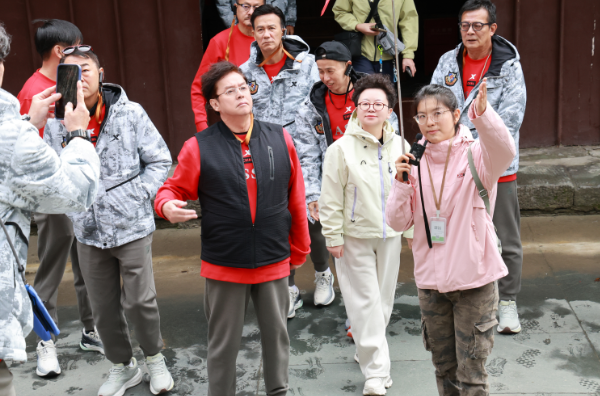 11月8日上午,武当山迎来了一群特殊的客人——由谭咏麟、黄日华领衔的香港明星足球队一行,在2025“稻花香·活力杯”十堰首届足球超级联赛(堰超)揭幕战暨香港明星足球赛开赛前,稻花香集团党委副书记方丽华陪同明星队员们游览武当山,在仙风道韵中感受中华传统文化的博大精深,以足球为媒,以美酒为桥,共续稻花香与香港明星的活力之缘。 文脉深互动 情缘再续话活力 在武当山,明星们怀着崇敬之心,认真聆听讲解员讲解武当文化传承与道教养生智慧。