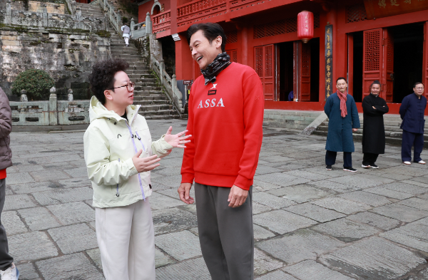 乘车盘山而上,古朴庄严的紫霄宫映入眼帘,明星们纷纷赞叹 “仙山果然名不虚传”,大家刚下车便迫不及待拿出手机记录美景,现场欢声笑语不断。