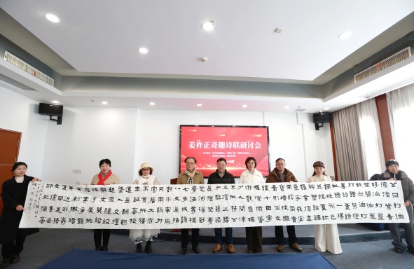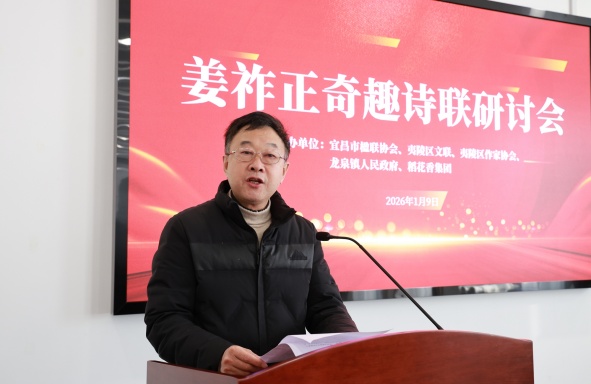 酒城龙泉迎墨客,诗联奇趣醉知音。1月9日,“姜祚正奇趣诗联研讨会”在夷陵区龙泉镇稻花香集团举行,这场集学术研讨、文化展示、乡情联结于一体的盛会,不仅深入研究探讨了姜祚正先生的艺术奇趣与人生智慧,更生动诠释了稻花香与本土文化血脉相连的深厚渊源。