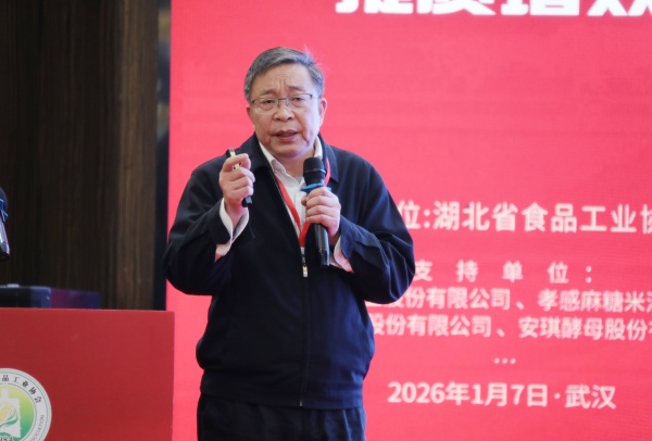 与会嘉宾和代表 本次大会以“融合创新 提质增效”为主题,旨在深入贯彻党的二十届四中全会精神和习近平总书记考察湖北重要讲话精神,落实《关于进一步推动食品工业转型发展的实施方案(2025-2027年)》,总结“十四五”以来全省食品产业发展成果,系统谋划“十五五”及2026年行业发展方向,进一步推动产销对接、科技赋能和品牌集群建设。  蔡开云致辞 蔡开云在致辞中表示,“十四五”期间,全省食品工业产业结构持续优化,构建起以农副食品加工、食品制造、酒饮料和精制茶制造为核心的现代化产业体系;产业链条持续壮大,培育出一批百亿级龙头企业和特色产业集群;创新动能加速迸发,关键核心技术实现突破,数字化转型步伐加快,推动湖北食品实现从“原料输出”到“精品输出”的跨越,在全国乃至全球产业链中的竞争力和影响力持续提升。 2026年是“十五五”开局之年,也是湖北食品产业蓄势突破、提质跃升的奋进之年。蔡开云表示,省食品工业协会将持续发挥桥梁纽带作用,将发展的着力点放在“融合创新”与“提质增效”上,构建产业生态,促进产业链、创新链、价值链“三链”深度融合,推动协同发展;加快科技赋能,聚焦产品、工艺、模式、管理“四个维度”,推进健康新品研发、智能化改造和新渠道拓展,构建绿色供应链体系,以创新引领产业高质量发展;坚守匠心品质,落实“四个最严”要求,完善全链条追溯体系,筑牢质量根基,共树“湖北名优食品”品牌形象,守护人民群众“舌尖上的安全”,为湖北建成中部崛起重要战略支点贡献食品产业力量。 据了解,目前湖北省茶叶、饮料、酿酒产量分别位列全国第三、第四、第六位,“三品一标”产品总量、规模以上食品饮料企业营收和利润总额稳居全国第一方阵。亮眼成绩的背后,展现了湖北省食品产业的匠心坚守与奋进担当。作为服务与连接全省食品企业的平台与纽带,多年来,湖北省食品工业协会强化党建引领,凝聚行业发展红色动能,以高质量党建助力产业高质量发展;搭建交流平台,通过行业盛会、跨域考察、产业对接、技术交流、专业培训等,促进产业协同创新发展;强化服务职能,深化走访调研,精准对接会员需求,促进产业融合高效发展;加快转型升级,以科技创新驱动发展新质生产力,引领行业从传统制造迈向现代智造与服务升级。