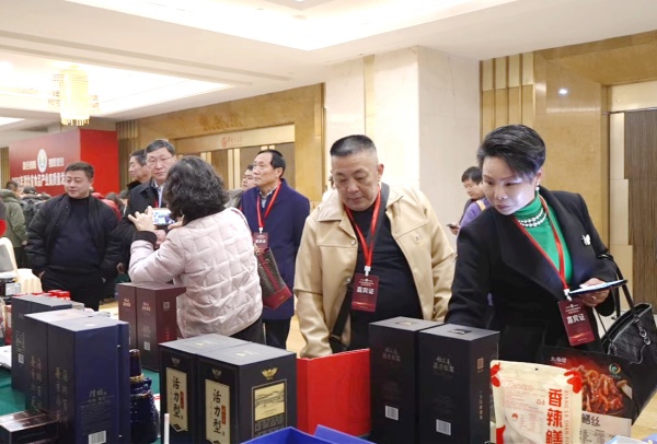 与会代表了解稻花香产品 活动现场还设置了名优食品产销推介专区,这里不仅集中展示了一批湖北产区品牌和特色食品,更成为连接产销、促进合作的活跃平台。在精心布置的展区内,稻花香清样、馫香原浆、活力型等系列白酒因其经典造型和过硬品质,吸引与会代表驻足咨询,感受湖北白酒的多元魅力。