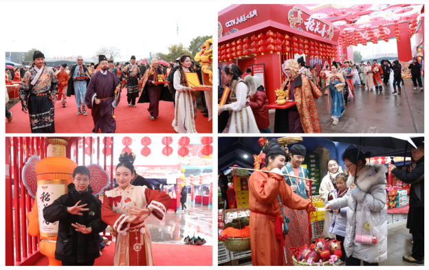 启动仪式后,与会领导、嘉宾一同走进展区巡览。他们实地走访九大主题街巷,详细了解布展特色、商品供应、惠民措施及市民采购情况,重点参观了稻花香等本土品牌展位,与参展商户交流,询问企业规模、产品特色、市场销售等情况,对品牌的创新发展和优良品质给予充分肯定。 唐风年韵 亮点纷呈 本届年货大集以“唐风年韵”为主题,结合园区现代集散优势,创新打造八大亮点活动,为市民呈现一场跨越千年的沉浸式消费盛宴。 开幕盛典启新章,唐韵新风扑面来。
