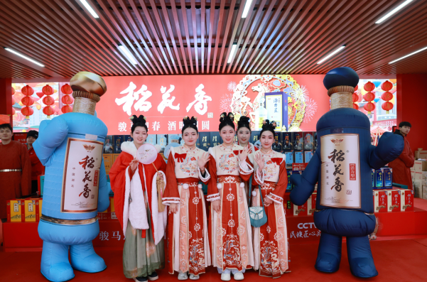 活动现场,各个主题街巷人潮涌动,年味十足。在“琼浆万福巷”核心展区,稻花香展位格外醒目。以大红色为主基调的展馆设计,营造出热烈、喜庆、祥和的氛围,氤氲着浓郁的年味。