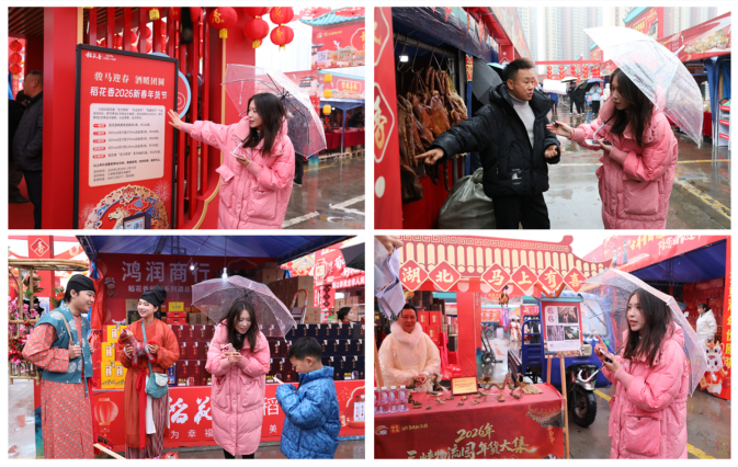 活动期间,西域《胡旋舞》翩跹动人,唐装走秀华美典雅,飞花令吟诵诗韵悠长,古风音乐婉转动人。传统杂技与现代表演艺术在此巧妙融合,转碟、空竹等技艺与唐风舞蹈交相辉映,为市民持续奉上精彩纷呈的视听盛宴。“节目既有传统底蕴,又充满新意,年味十足!”现场观众纷纷举起手机记录精彩瞬间。 云端同步购好物,指尖轻点年货到。