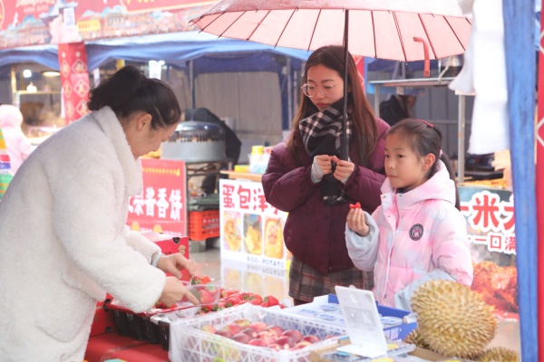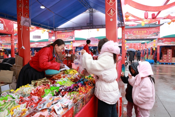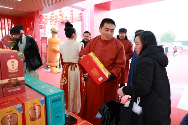 园区内设立的“大唐驿站”不仅提供免费热水、咨询引导、共享充电宝、休息座椅等便民服务,更作为活动互动枢纽,提供游戏道具领取、礼品兑换等专项服务,让市民逛得省心、玩得开心、买得放心。 年味飘香 购销两旺