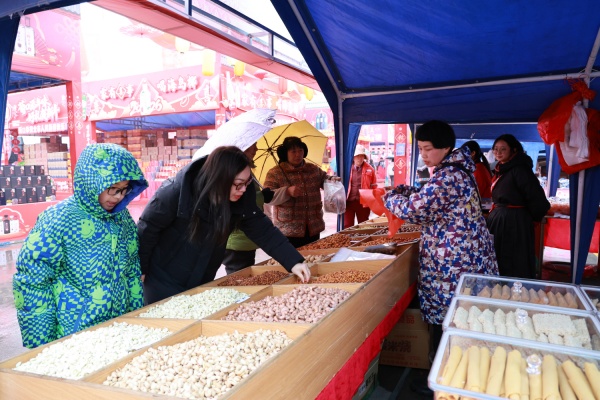 除了酒水展区,其他街巷同样购销两旺。在“瑶池果蔬巷”,来自全国各地的精品水果色泽诱人,智利车厘子、泰国榴莲、新疆香梨等应有尽有;“千珍御膳巷”各类精品粮油、南北干货、调味香料等商品丰富齐全,吸引众多消费者驻足选购;“上元美食巷”飘来阵阵香气,萝卜饺子、炕土豆、烤苕皮等宜昌特色小吃现做现卖,令人垂涎欲滴。