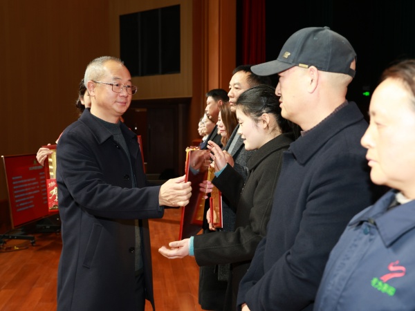 稻花香集团总经理曾洋作《稻花香集团2025年度工作总结》,集团党委副书记、工会主席方丽华宣读《稻花香集团关于表彰2025年度先进集体和先进个人的通报》,集团副总经理陈小磊主持大会。 2025年,是“十四五”规划收官之年,也是稻花香推进“四个全面提升”的开局之年。 这一年,全体稻花香人同心同向、实干担当,在市场鏖战中攻城拔寨,在项目建设上昼夜不息,在经营管理上精益求精,推动稻花香始终稳健发展、经营持续向好,共同书写了稻花香高质量发展的奋斗答卷。 这一年,稻花香固本强基,白酒主业深入实施“燎原”战略,打造“1+4”核心市场,同步优化渠道和产品结构;万吨馫香型白酒智能化酿酒基地取得阶段性成果,数字化转型步伐加快,品质管控体系日益完善。强链补链,三峡物流园提质增效,包装配套产业紧跟主业实施技改升级,小微创业园优化服务功能,酒旅融合有效推动区域产业协同发展。全面推进“精益管理”模式,完善人才培养和激励机制,打造品牌文化IP、构建传播矩阵,践行公益捐赠、企地共建和产业链引领责任,全面提升企业社会形象。 先进典范扬正气 奋楫争先树新风