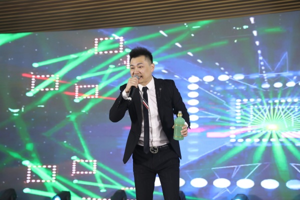 优秀民歌手李虹献上《幸福欢歌》《春风十万里》,悠扬的歌声唱出新春喜悦。随后,时尚电子音乐氛围歌手郭旭激情登场,《超越梦想+我的未来不是梦》《我的歌声里+朋友+把酒倒满》《朋友的酒+潇洒走一回》《别让我一个人醉》等歌曲串烧瞬间点燃全场。演出间隙,郭旭端起稻花香美酒,高声邀约:“把酒当歌,人生几何!有歌一起唱,有酒一起喝!”全场齐呼:“干!干!干!”他应声一饮而尽,晚宴现场秒变演唱会。当《把酒倒满》的旋律响起,他再次举起酒瓶,全场起立、双手挥舞,呐喊声、掌声汇成热浪。在“把酒倒满,来他个不醉不休”的豪情中,郭旭仰头饮尽,将今夜的热烈推向巅峰。