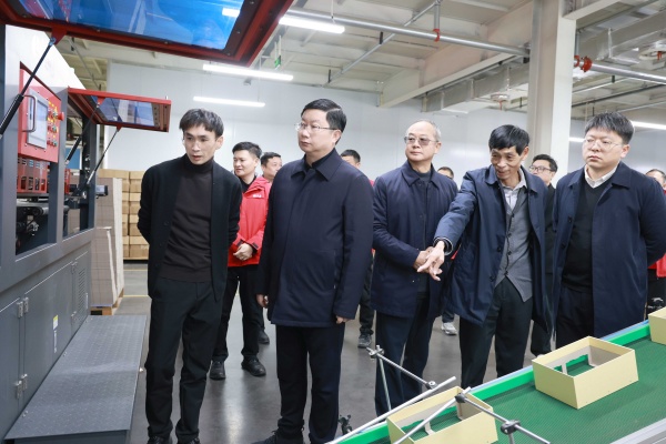 来到包装工业园,蔡开云一行深入各包装企业生产车间,了解各企业开工首日生产计划和安排,企业在新设备引进、新技术运用等方面的情况,以及当前包装产业面临的新形势、新机遇和新挑战。蔡开云要求各企业要敏锐洞察行业趋势,保持前瞻性思维,在技术创新、绿色包装、智能制造等方面寻求新突破,共同提升产业链整体竞争力。 稻花香集团总经理曾洋、集团副总经理陈小磊、集团行政总监陈菊安、稻花香酒业公司副总经理苏顺平、各企业相关负责人等陪同走访调研。 同心聚力,策马出征