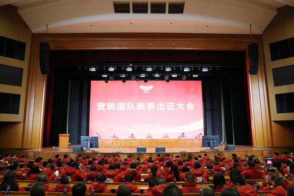 稻花香大礼堂,营销团队新春出征动员大会在此举行,全体营销将士以“开局即决战”的姿态,擂响2026年征战金鼓。 大会在《团结就是力量》合唱中拉开帷幕,铿锵旋律点燃全场豪情。全员深入学习《董事长蔡开云在2025年度总结表彰大会上的讲话》,将战略部署转化为奋进动力。酒业公司市场部现场宣读《新春客户拜访工作方案》,周密部署节后深化客情、激活市场等工作。