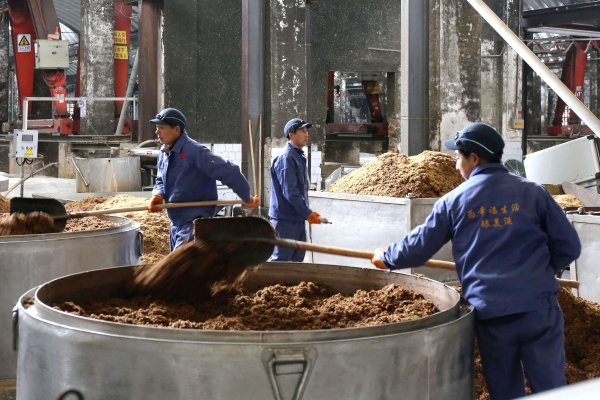 第十酿酒车间内,蒸汽升腾、粮香四溢。酿酒工人有序作业,智能化设备高效运转,机械臂与传送带协同配合,技术人员细致检测窖池温度,同步开窖备产,为新一年酿酒工作开好头、起好步。