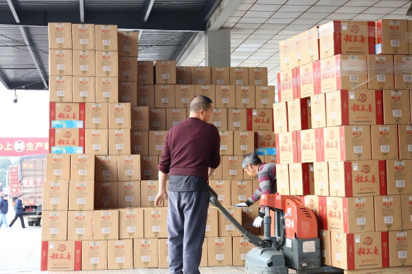 发货平台上停满了等待装货的车辆,有来自武汉、黄梅、安陆、鄂州、云梦、黄冈等省内市场,还有来自广东、江西、福建、浙江等全国市场。一位等待装货的师傅表示,春节期间稻花香销售火热,他此次将运送4000多件稻花香酒前往江西市场。据了解,首个工作日,发货平台共发出稻花香酒近7万件。