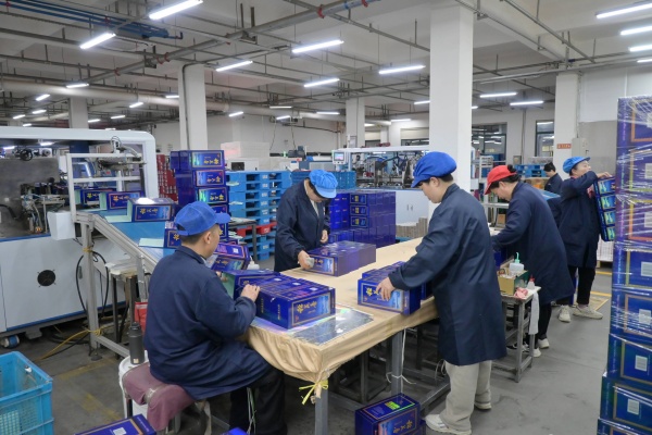 在生产中心,包装工人们身着统一工装,在生产线上紧密协作,一件件活力型、珍品一号等产品完成各项工序,发往成品库。生产中心工作人员表示,年前就做好了生产计划和安排,大家正加足马力,全力保障市场供应。
