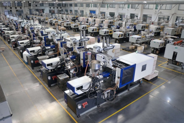 崟锦公司注塑车间自动化设备高速运转,去年投用的全自动喷码机、除尘包装机等新装备,使生产效率与产品质量双提升。开工首日生产组合式防伪瓶盖18.4万只、塑料托盘200个。