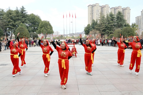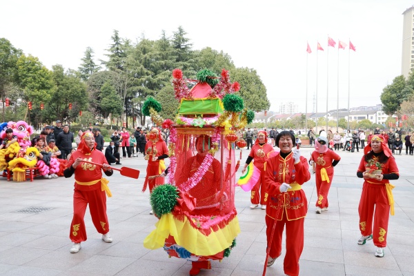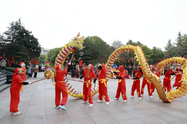 3月3日,农历正月十五,稻花香集团办公大楼前广场上龙腾狮跃、锣鼓喧天。由夷陵区文联授牌的“民俗礼仪传播基地”演职团队走进稻花香,以精彩的传统民俗表演,为夷陵区龙头企业送来新春祝福,与企业员工共庆元宵佳节。