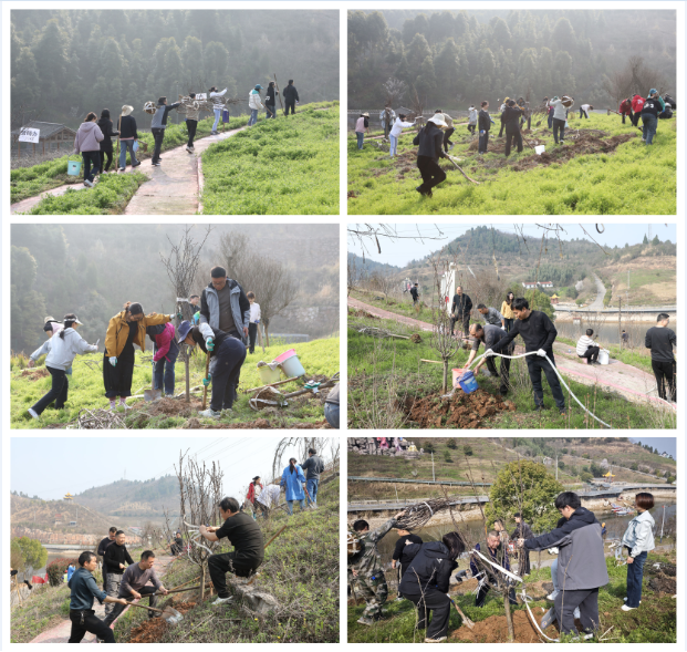 上午9时,参与植树的干职员工在山下广场集结,明确责任分工、划定责任区域,共同开展义务植树,携手织就一幅动人的生态画卷。